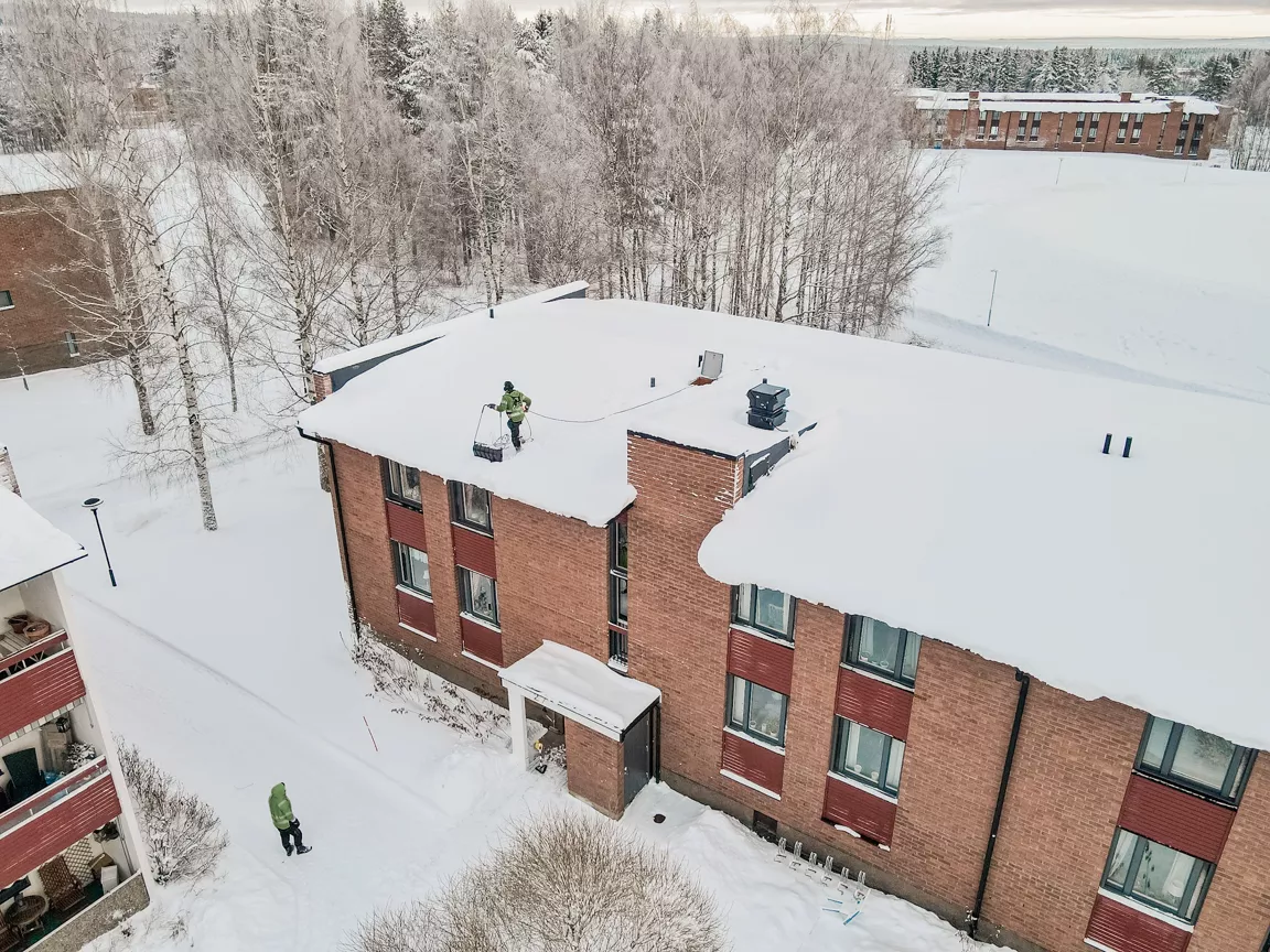Att skotta bort snö från taket och ta bort farliga istappar är avgörande för att skydda både fastigheten och människorna i dess närhet, särskilt i ett snörikt område vi bor i som Jämtland. Tunga snölaster kan skapa stora påfrestningar på takkonstruktioner, vilket ökar risken för skador eller i värsta fall takras. För fastigheter som tillhör bostadsrättsföreningar, industrianläggningar och kommersiella byggnader är det extra viktigt att förebygga sådana problem eftersom dessa fastigheter ofta är större och har mer komplexa takstrukturer, samt har fler människor i och runt dem. Förutom säkerhetsaspekterna är det också ett juridiskt ansvar för fastighetsägare att minimera risken för olyckor. Snö och istappar som faller från taket kan orsaka allvarliga skador på förbipasserande, fordon och egendom. Genom att regelbundet avlägsna snö och is bidrar du till att säkerställa tryggheten för de som vistas i närheten av din fastighet.
